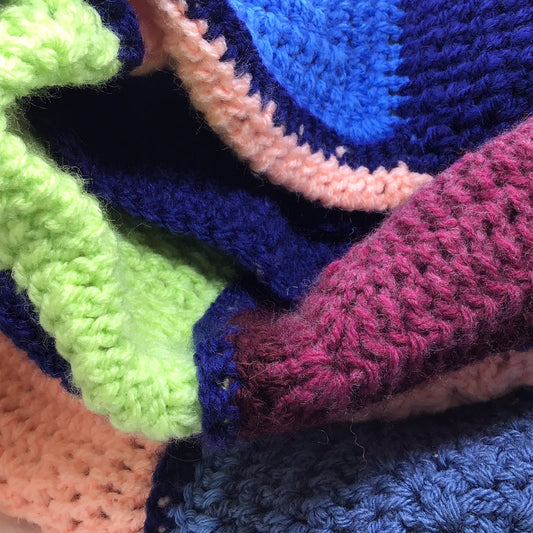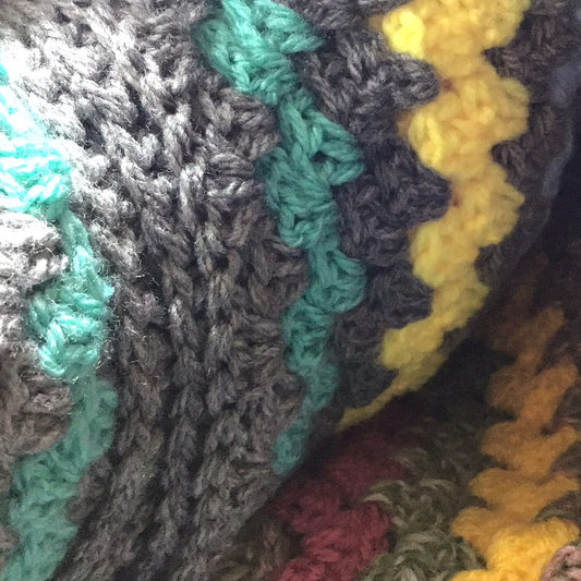 Crochet Blanket By Nancy - Large Grey/Rainbow