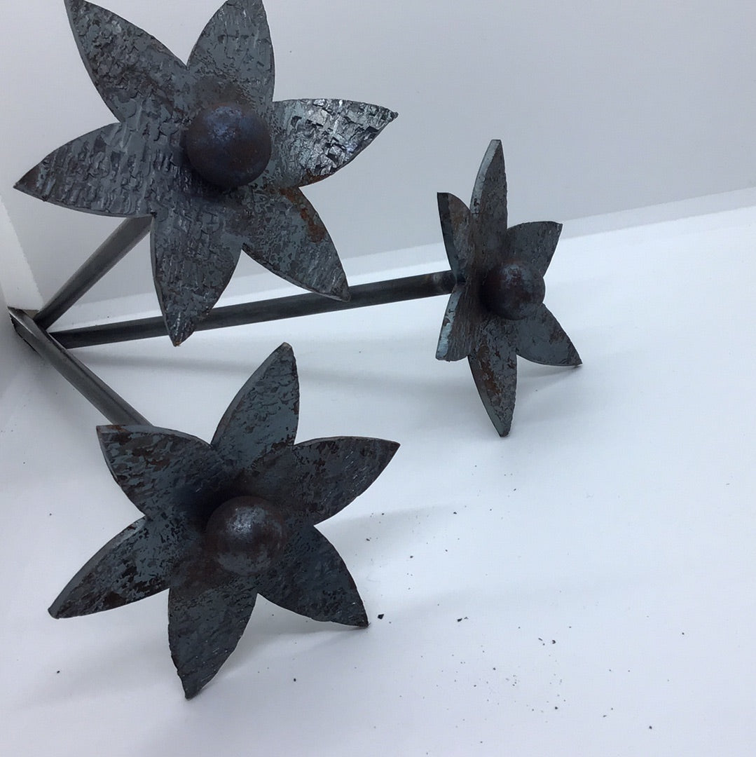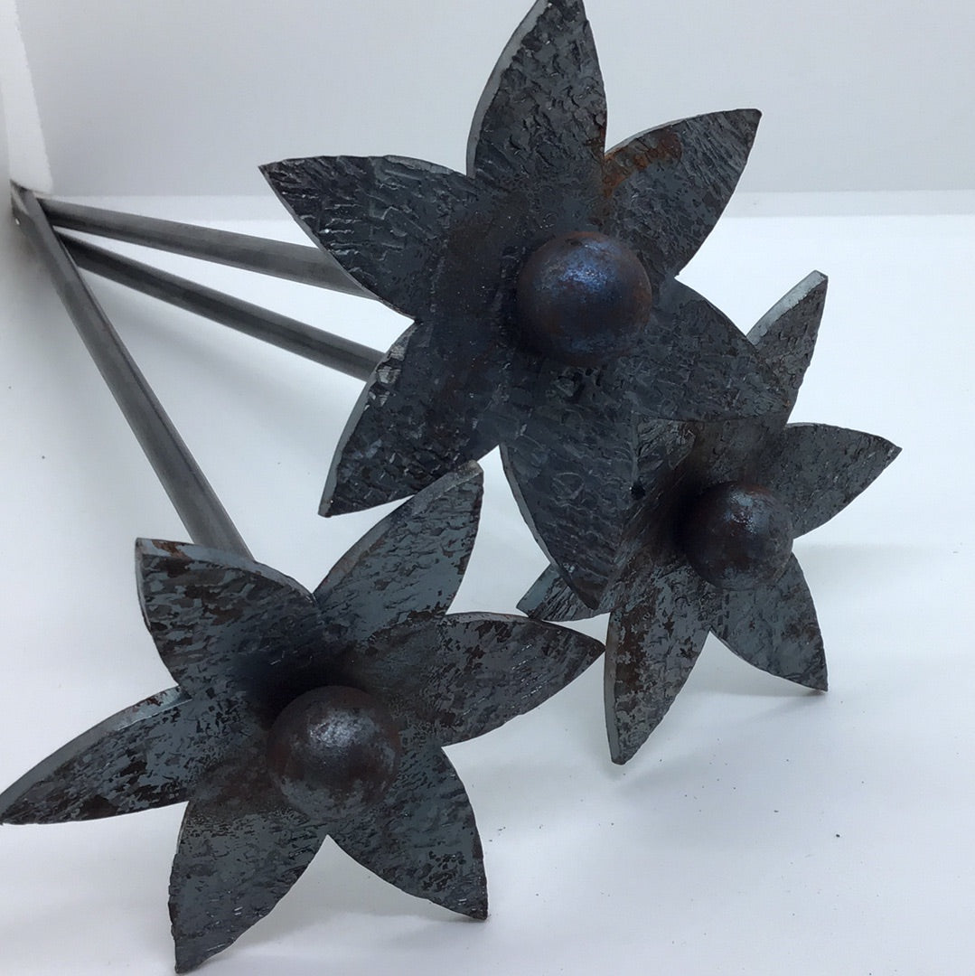 These long stemmed steel flowers make beautiful house or garden ornaments, they have been treated so that if left out in the garden they rust in a beautiful and unique way and made to last forever. Hand forged in Yorkshire by Piers Edsall
